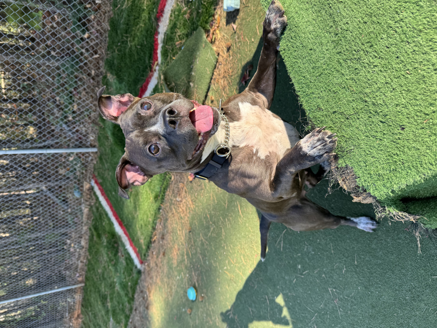 He was bossy to the foster dog and a toy hoarder. Everything and everyone was his, including furniture and humans. He wasn’t hostile but just had no manners that he thought should change. He was getting walks and playtime but decided he could set the rules and dismiss attempts to change them. This didn’t set him up to be a wonderful companion to potential adopters. We called Patrick based on a glowing referral from another of our adopters.