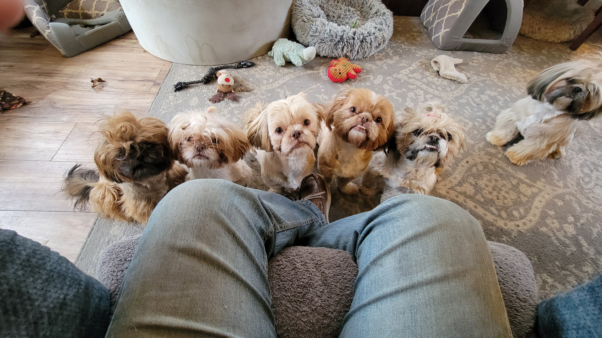 We have a pack of Shih Tzu's ages 1 - 10. Decided recently that the cute poster that says "Dogs have owners but Shih Tzu's have Staff" is cute but was getting too close to reality. Mike arrived and gave us a new look at how to interact with our little guys and after the first lesson watching Mike get a pack of barking dogs sit and wait to be told what to do next, we were on our way.