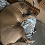 Rachel and Betty Lou are godsends. I was really worried that we’d never get a handle on Geena’s pack leader mentality, but these ladies trained us how to let Geena know we are the Alphas and she doesn’t have to protect us 24/7. She’s already more relaxed and she’s responding very well to us now that we are learning to speak dog!! Here she is, tired out from our training session?