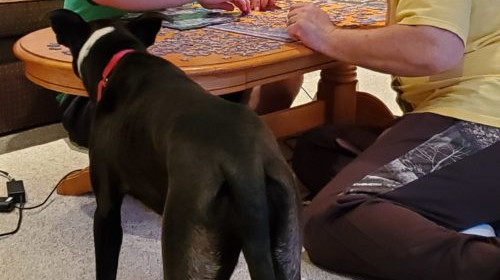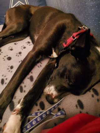 Jamie is settling into her new home with early mornings, crate training, and supervised interactions. She’s improving in leash manners and trust but still shows resource guarding and tension with Zoey. With patience and structure, her family guides her toward steady progress.