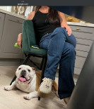 She was also very reactive to other dogs, making walks and public outings tough. With Jenna’s help, she’s much calmer now. We can take her on walks and even to restaurants with dogs around. We’re currently introducing her to other dogs slowly. While she still stays on a leash and sometimes growls or nibbles, she’s able to get very close. That’s a huge improvement from where we started.