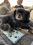 PermalinkAt first, Mimi had severe separation anxiety. She would escape her playpen, pace, and howl loudly whenever we left the house. Now, with Jenna’s guidance and the time we’ve put into her training, we can leave her alone for up to three hours. She’ll fall asleep and wait for us quietly. You can see her in one of the photos we attached.