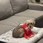 At first, Mimi had severe separation anxiety. She would escape her playpen, pace, and howl loudly whenever we left the house. Now, with Jenna’s guidance and the time we’ve put into her training, we can leave her alone for up to three hours. She’ll fall asleep and wait for us quietly. You can see her in one of the photos we attached.