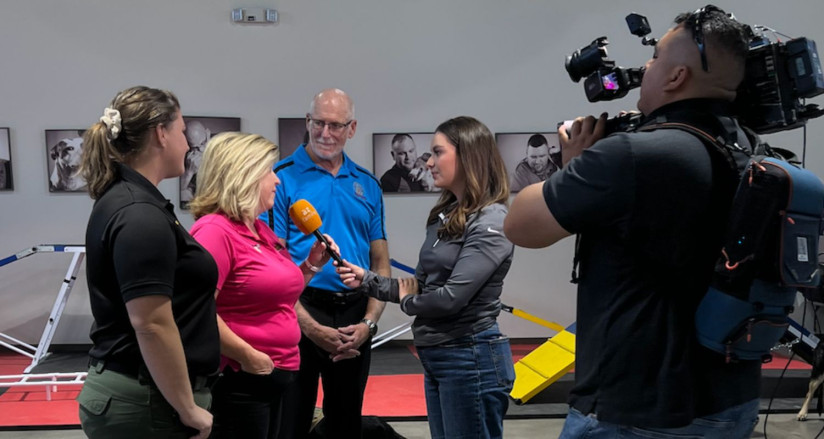 Mik Milem, Executive Director of Soldier’s Best Friend, says pairing the dogs with veterans is a six- to nine-month process. “All of these veterans are living with Post Traumatic Stress Disorder (PTSD) or a Traumatic Brain Injury (TBI); that’s how they get into our program. The dogs are trained for basic obedience, and then they are trained to do specific tasks for those veterans with symptoms of PTSD or TBI,” he explained.